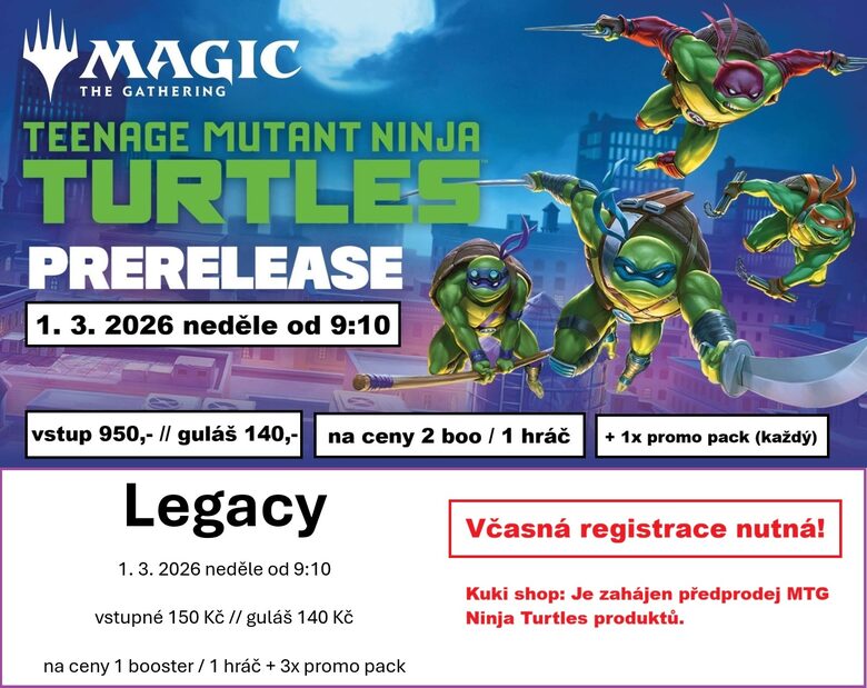 Prerelease Ninja Turtles + Legacy 1. 3. 2026 neděle - registrace!