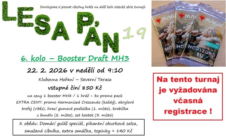 6. kolo Lesa pána 19: Booster Draft Modern Horizons III. 22. 2. 2026 neděle