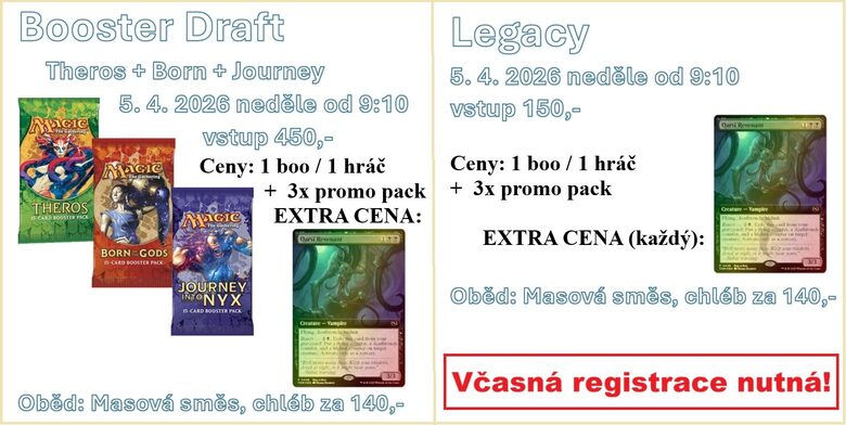 B. Draft Theros + Born + Journey // Legacy 5. 4. 2026 neděle - REGISTRACE!
