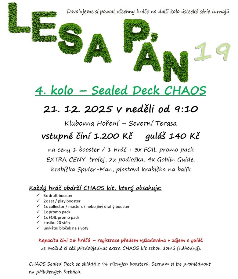 4. kolo Lesa pána 19: Sealed Deck CHAOS 21. 12. 2025 neděle - registrace!