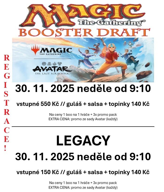 Booster Draft Avatar + Legacy 30. 11. 2025 neděle - REGISTRACE