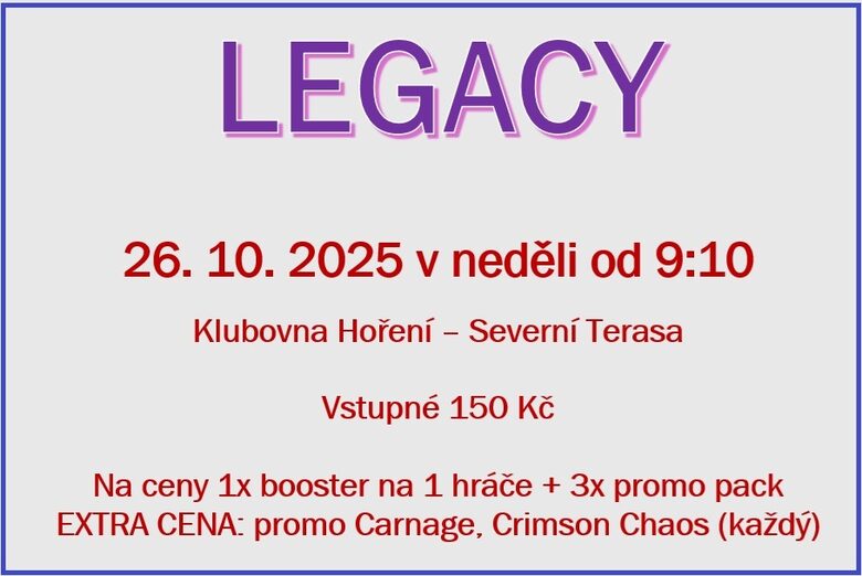 A také zároveň proběhne Legacy jako druhý turnaj.
