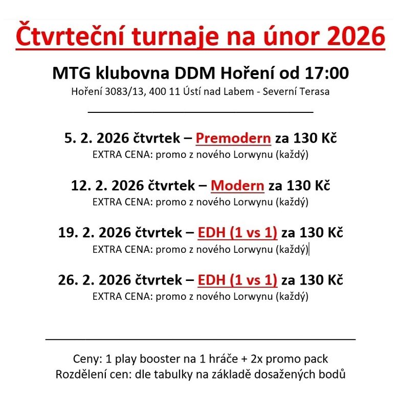 Čtvrteční turnaje na únor 2026