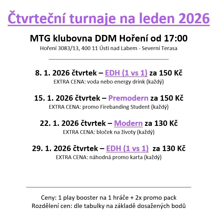 Čtvrteční turnaje na leden 2026